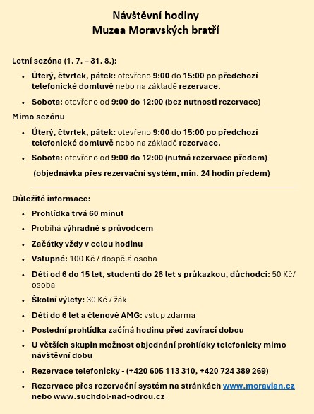 Návštěvní režim muzea Moravských bratří