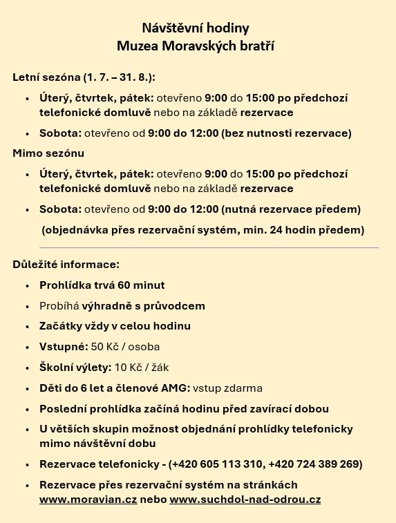 Návštěvní režim muzea Moravských bratří